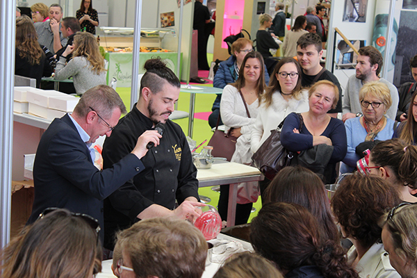 Jean Emmanuel Trouba (participant à l’emission le Meilleur Pâtissier de M6) a réalisé des petits choux garnit cassis framboise et violette, et les visiteurs se sont régalés !