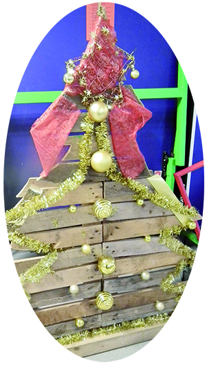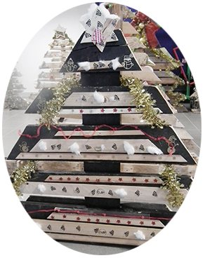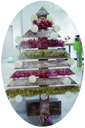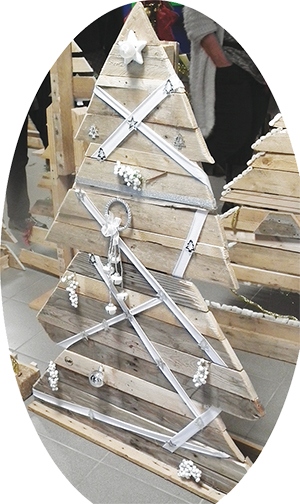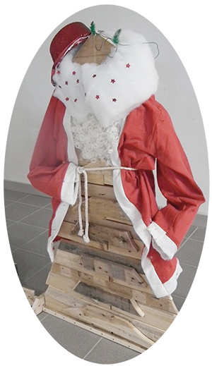 Cette opération de fabrication a été réalisée avec des palettes (fournies par le SIVOM), et en complément des petites fournitures de décoration données par la Croix Rouge et l’Ucab afin de s’auto financer.