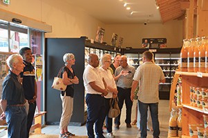 A 16h, Alain Deschamps a conduit Mr le Ministre dans le nouveau magasin de ‘‘Bugey côté fermes’’ où 17 exploitants en association vendent en direct les produits de leurs fermes. M. Bosco Rivotiana s’est montré particulièrement intéressé par les valeurs unissant les producteurs notamment au niveau du respect de la nature, de l’animal… Ensuite, il a longuement écouté le président actuel de ‘‘Bugey côté fermes’’ évoquer les différentes étapes de la création de cette association quant aux formalités, aux financements, aux partages des tâches, etc. depuis 1999. Et puis, il fut question aussi des retombées économiques et sociales d’une telle initiative : près d’une centaine de personnes travaillent dans les exploitations pour ‘‘Bugey côté fermes’’. Cette structure aura permis de soutenir l’installation d’exploitants et plus largement cela aura permis à des exploitants d’exister.