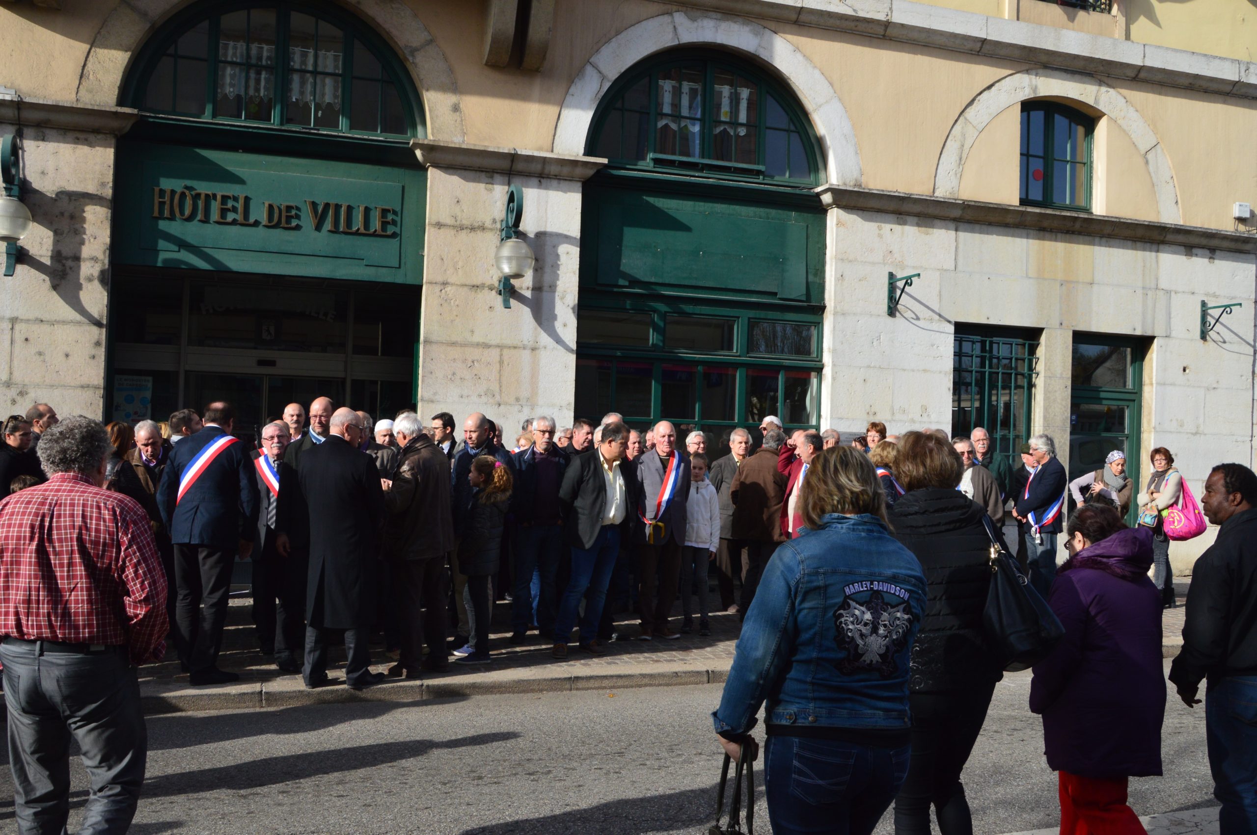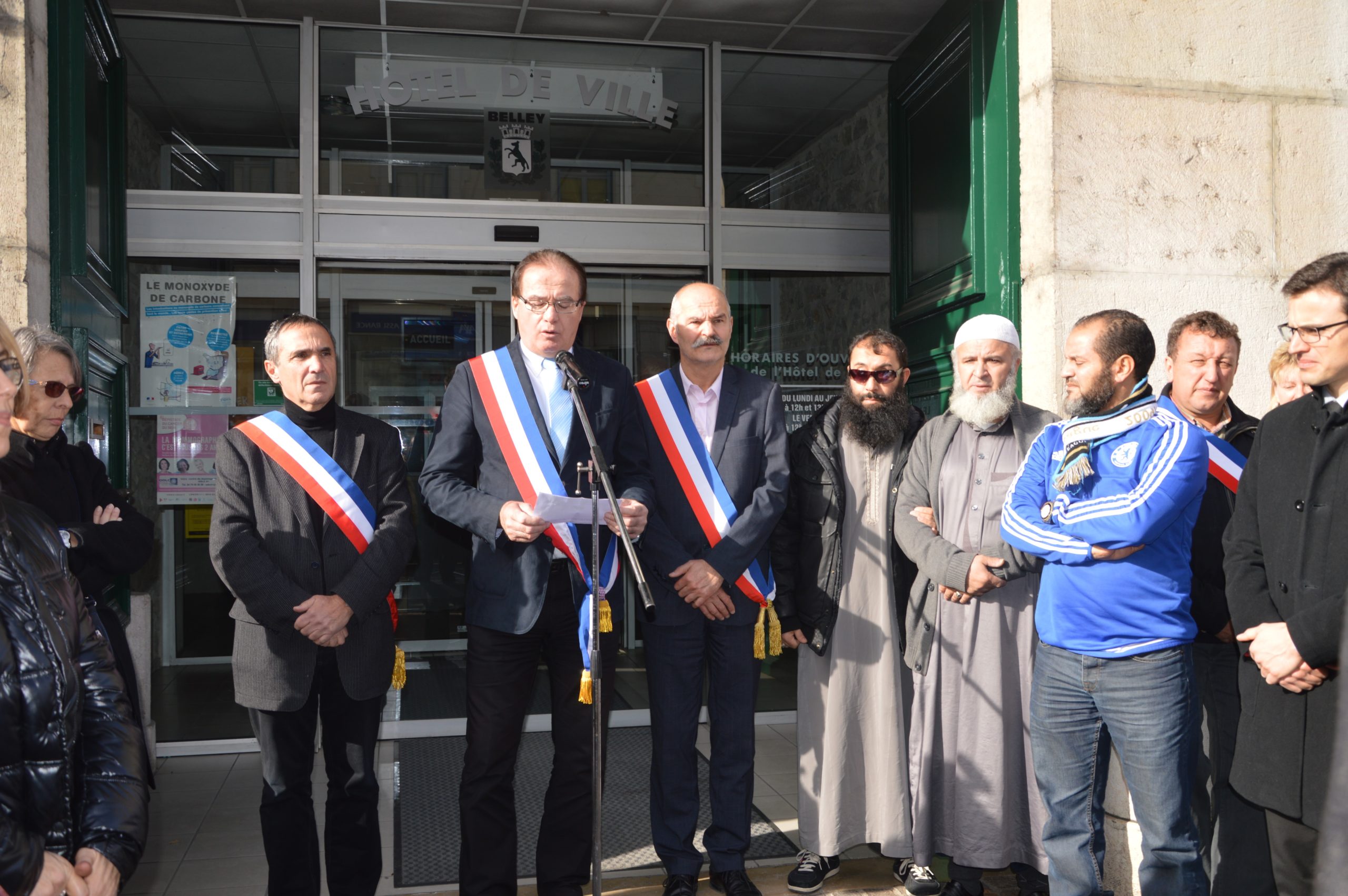 Beaucoup de monde devant la mairie avec une forte délégation de la communauté musulmane de Belley.