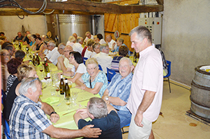 Puis à l’intérieur même de la cave, le repas servi fut de grande qualité apprêté par Christophe, le Chef belleysan de l’Atelier des Sens. « Pressé de foie gras et queue de bœuf, volaille fermière aux écrevisses et son accompagnement », entre autres, de quoi ravir le palais des convives.Citons en accompagnement la Roussette du Bugey et le Pinot Rouge de cette belle et vaste propriété.