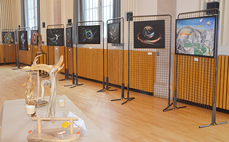 Belle exposition artistique à la salle des fêtes de Belley en ce début mai. De très jolies rencontres au fil des quelques 500 visiteurs qui en 7 jours ont regardé et admiré les œuvres de Jean-François Durdilly un sculpteur sur bois flotté, Eddy Coste un jeune photographe de talent, Lola Pruvost une peintre contemporaine décapante, Jean Marie Coste peintre et caricaturiste étonnants et Alain Vollaire aux dimensions sidérales…