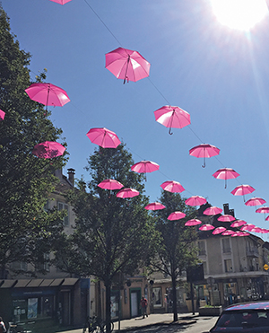 – Vente de parapluies au profit de la Ligue contre le cancer et Jeune et rose