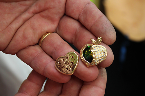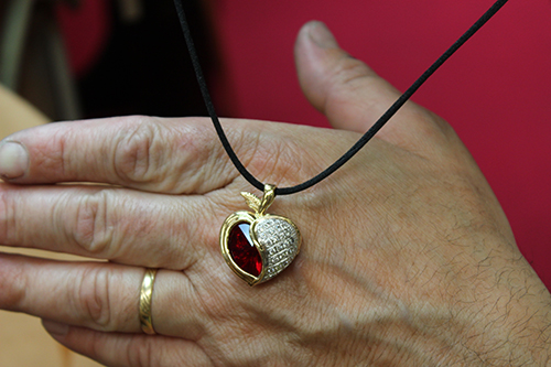 La « Pomme d’Amour » : 15 g d’or 750 /1000 – 27 diamants (0,7 carats ) – 10 cœurs « cristal de Swarovski » D’une valeur de 2850€ ! Gagné par Valérie Trabalza.