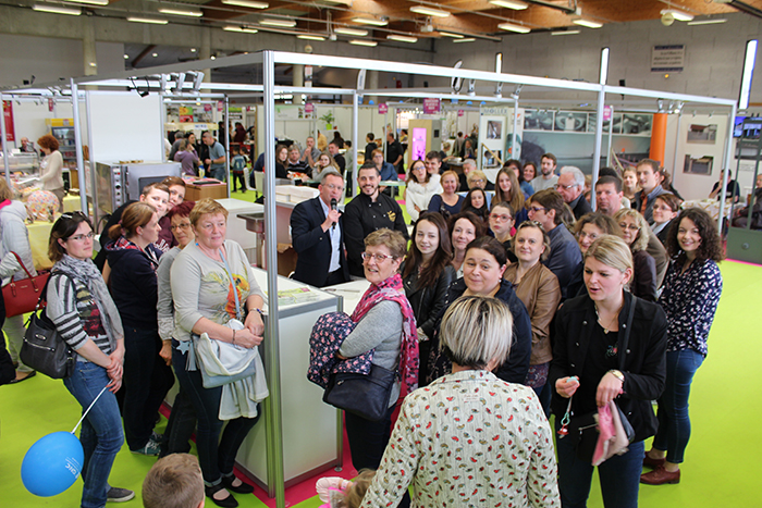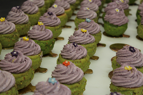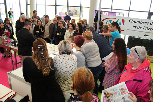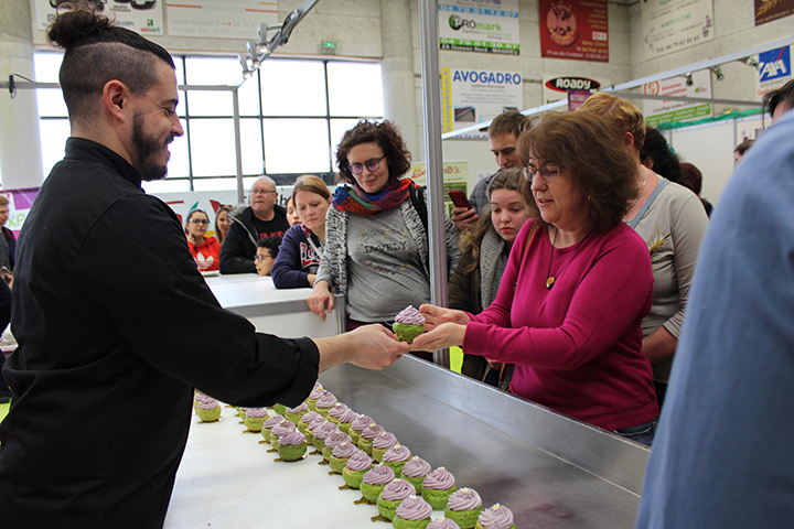 Jean Emmanuel Trouba (participant à l’emission le Meilleur Pâtissier de M6) a réalisé des petits choux garnit cassis framboise et violette, et les visiteurs se sont régalés !