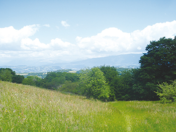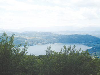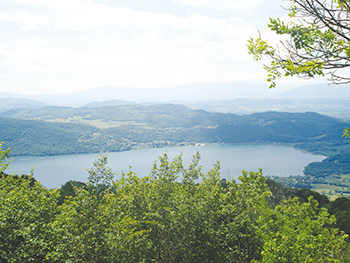 Quelques mètres après les ruines, une vue dégagée offre un joli panorama sur, entre autres, le lac du Bourget, la Chautagne, le Bugey et le Grand Colombier. Le sentier redescend ensuite dans la fraîcheur de la forêt puis traverse les champs dans les paysages bucoliques des hauteurs de Cessens pour revenir au parking.