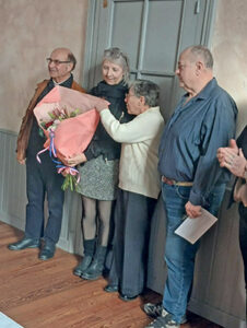 Un moment charmant a clôturé son exposé. Les deux maires précédant, Marie-Ange Baron (1995 – 2001) et Jacky Thomas (2001 – mars 2014) se sont joints à Marc Buet pour offrir un bouquet de fleurs à Rolande Demitres, secrétaire de mairie depuis le 1/1/1999, soit 27 ans pour son dévouement et efficacité. Elle restera bien évidemment à son poste cette année et plus.