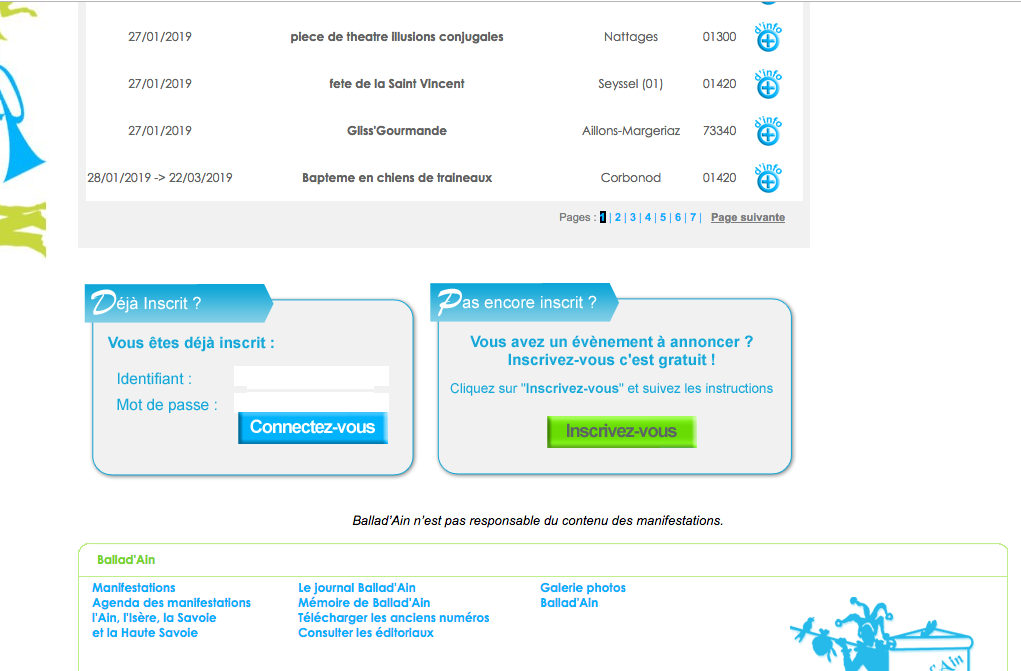 Le journal Ballad’Ain (mensuel) annonce gratuitement vos évènements sur chaque édition dans la page AGENDA (page 13 en janvier 2019).