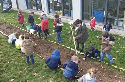 La classe des moyennes/grandes sections de Claudia Thacker, conjointement avec celle des grandes sections/ CP de Justine et Mélanie, puis la classe ULIS de Pierre Treneuil, lancent le projet jardin pour 2019/2021 avec l’aide de L’ADAPT de Peyrieu, de Claude Vigneron et son équipe pour la création de l’espace jardin, tout en conciliant une activité sensibilisation sur «la Différence, et le Handicap» sous convention.
