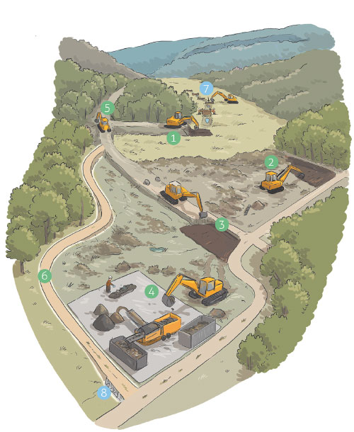 1 – Retrait des remblais de la digue avant tri des matériaux