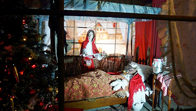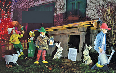 Des mannequins, costumés et en situation, évoquent des scènes inspirées des fêtes de Noël et de contes pour enfants :