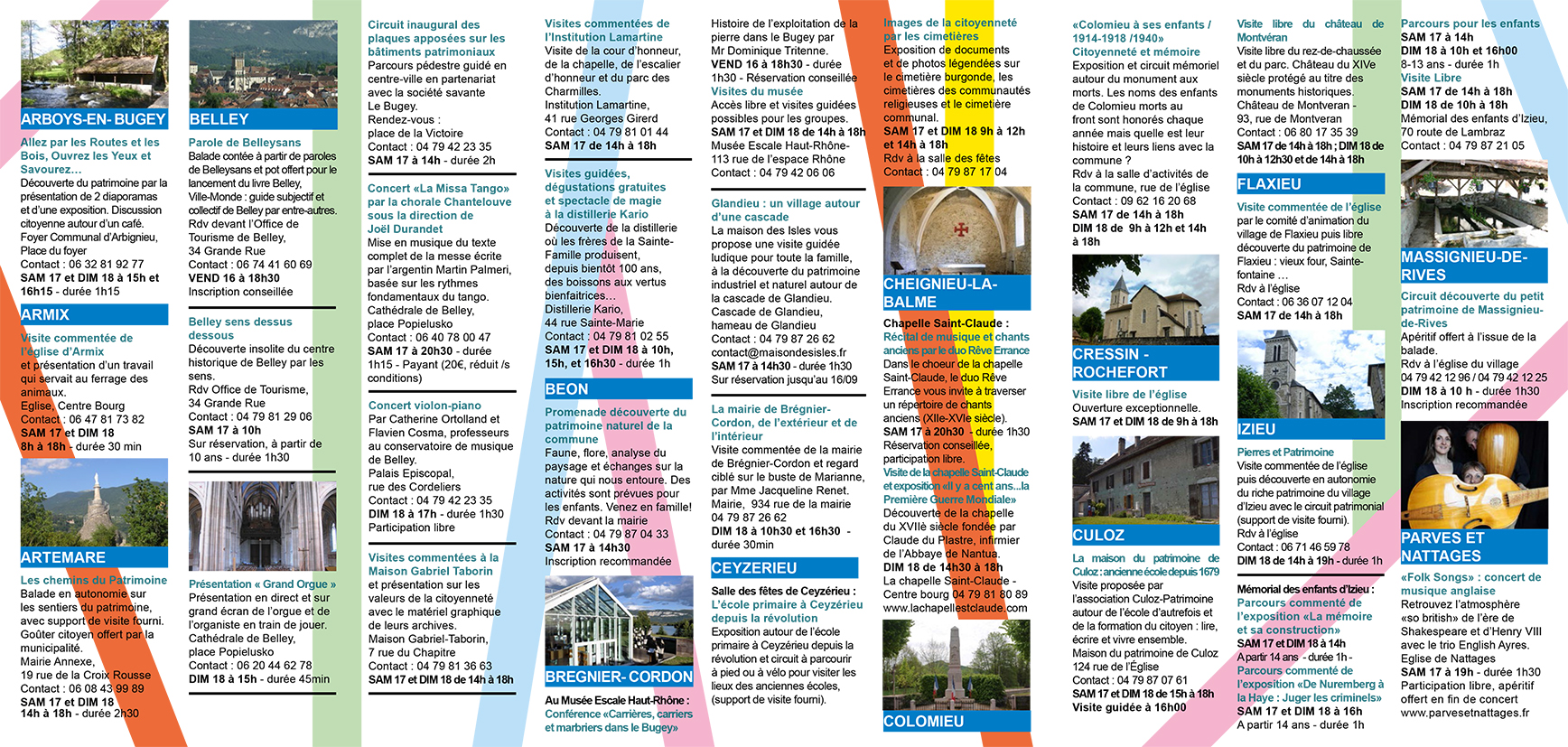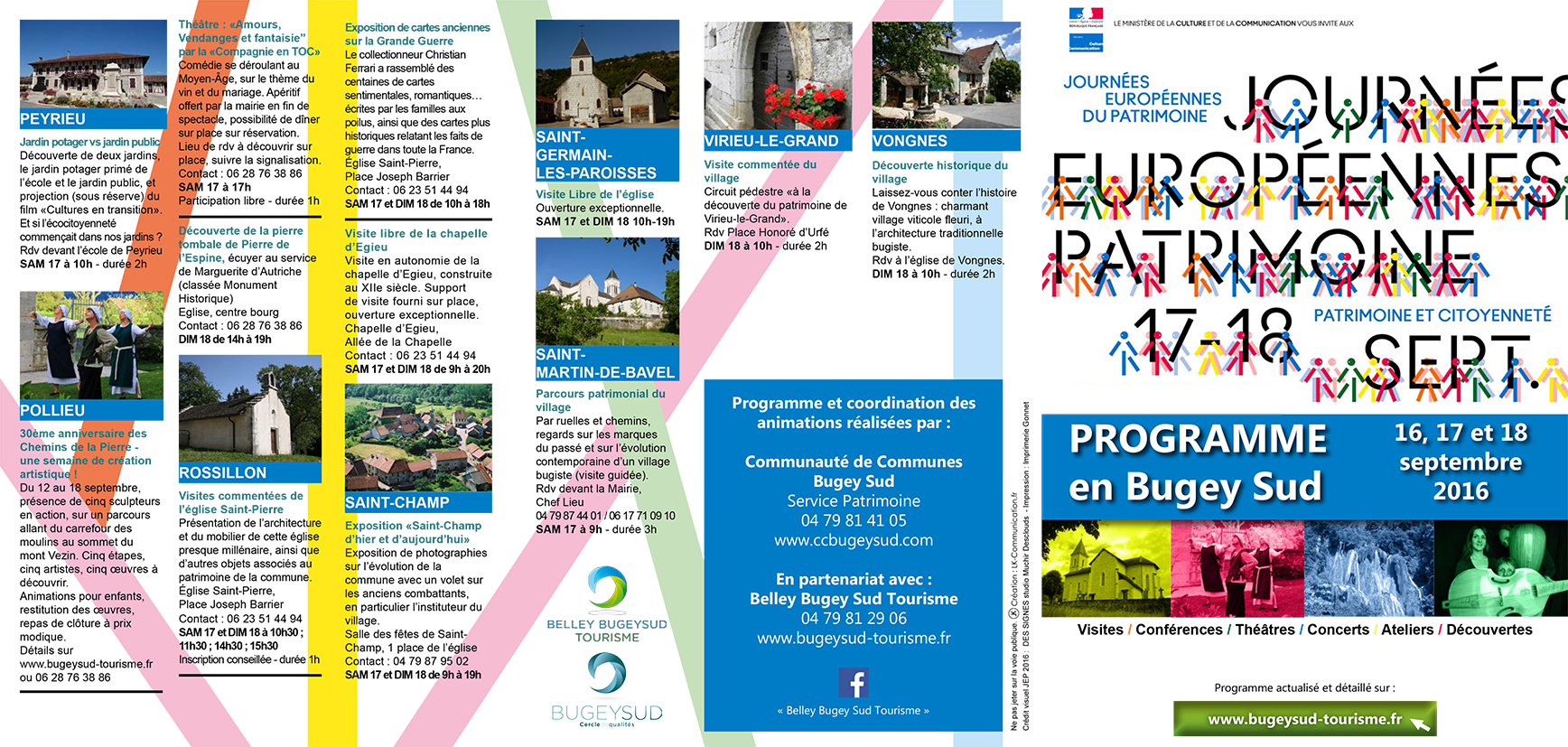 Retrouver ci-dessous le programme des Journées Européennes du Patrimoine dans vos communes : Categories: Actualités, Culture, Evenementiel, Tourisme, Vie des communesPar Léa1 septembre 2016Laisser un commentaire Author: Léa Post navigationPreviousPrevious post:Tunnel du Chat – Fermetures en août et septembre 2016NextNext post:La rentrée de Walibi Rhône-Alpes s’annonce pleine de surprises !