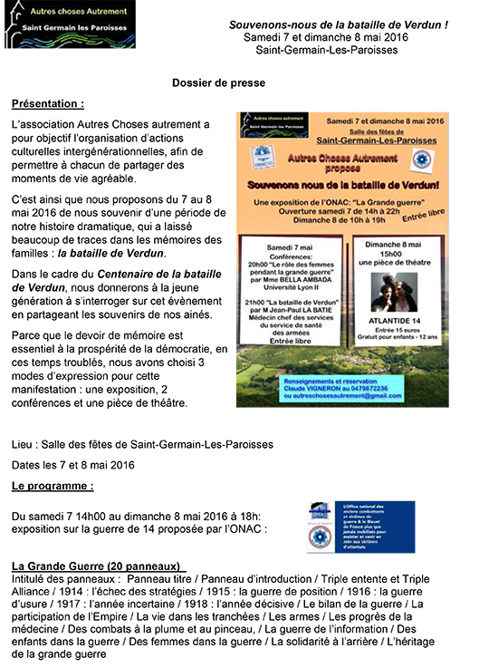 Bataille de Verdun Saint germain les paroisses ballad et vous