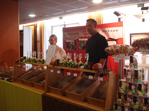 , a proposé à la dégustation ses pralinés et autres créations chocolatées. Et Pierre Jouvenal, artisan-chocolatier de la Côte Saint-André, passionné par son art et incollable sur le chocolat et son histoire, a enchanté les visiteurs par sa bonne humeur communicative.