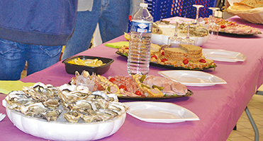 Auprès d’un buffet de grande qualité, charcuteries, huîtres et fromages, la sommelière Chrystelle Carrara fidèle intervenante depuis plus de dix ans, a présenté 6 crus différents. Un Alsace Gewurztraminer Grand Cru, Eichberg Wolfberger 2015 : un florilège de parfums… Un Côte-de-Brouilly, Les pierres bleues 2015 aux saveurs d’iris et de poivre blanc… Un Côte du Rhône E. Guigal 2013 un classique de qualité ainsi qu’un Blaye Côtes de Bordeau-Château Haut Lalande 2015 disons de la même veine… Un Graves Château Haut Gramons 2012, ambré, boisé, vanillé… Un Haut Médoc Cru Château Tour du Haut Moulin 2010 : « Une attaque très franche suivie d’une belle puissance » pour reprendre les termes imagés de la sommelière.