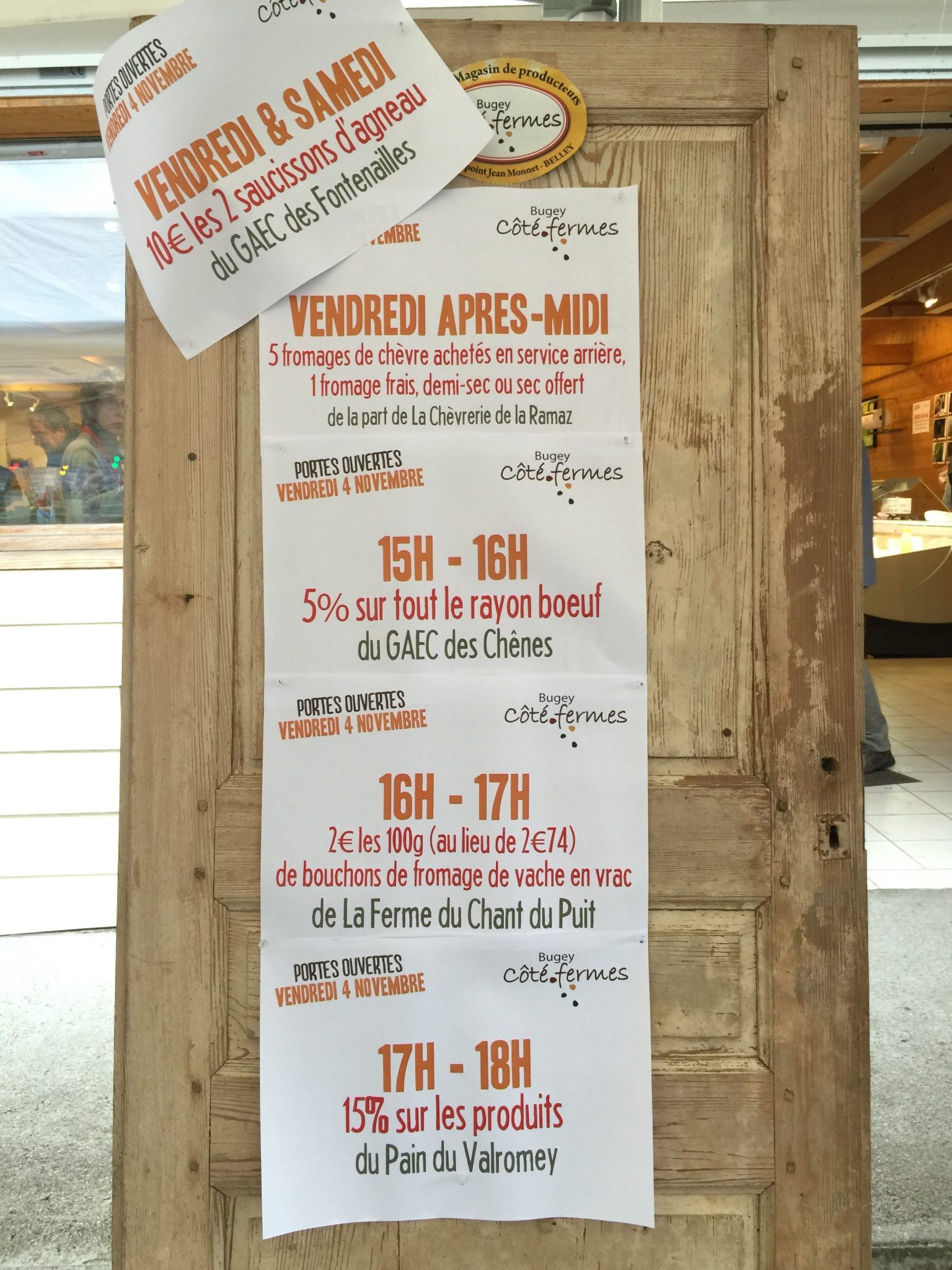16h-17h : 2€ (au lieu de 2€74) les 100g de bouchons en vrac de fromage de vache de La Ferme du Chant du Puits