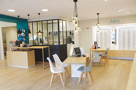 « Plus épuré, plus moderne… Nous avions à cœur de montrer la dimension manuelle du métier, en créant la verrière qui donne sur notre atelier. D’autre part, nous voulions vraiment axer sur le créneau créateur, avec des montures plus typées ; et en travaillant avec des fabricants lunetiers Jurassiens et Français. Et enfin, la création d’un espace enfant rend le choix des premières lunettes plus ludique !