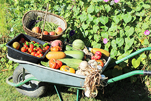 Je produis quelques fruits et légumes dans mon tout petit potager familial, et mes enfants et moi participons régulièrement à la culture du très grand potager et du verger de ma belle famille.