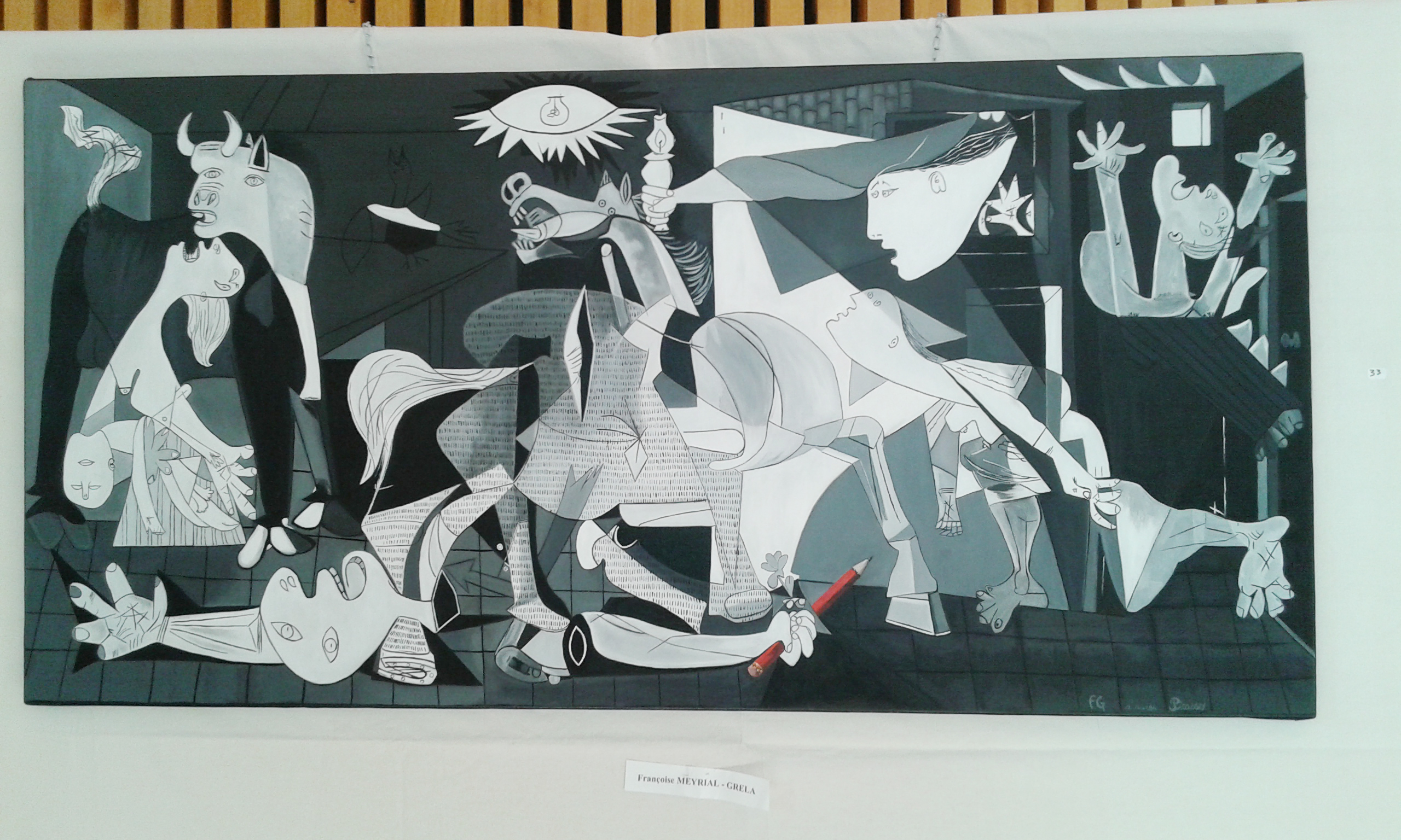 C’est un tableau qui accroche le regard. Les couleurs chatoyantes, le mouvement, la lumière… Une peinture à l’huile, fruit d’un travail de plusieurs années. La “dentellière” de Colette Sonzogni emprunte à Wermeer sa figure mythique, à laquelle la peintre a apporté sa créativité. Un musée étranger, à la recherche d’artistes ayant introduit des tableaux connus dans l’une de leurs œuvres, pourrait même s’en porter acquéreur ; imaginez notre fierté !