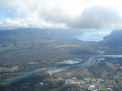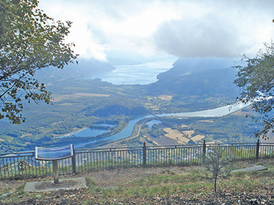 Ce belvédère remarquable offre un panorama grandiose sur la Haute vallée du Rhône, les chaînes des Aravis et de Belledonne, le Mont Blanc et les massifs des Bornes, des Bauges, de la Chartreuse et du Jura.